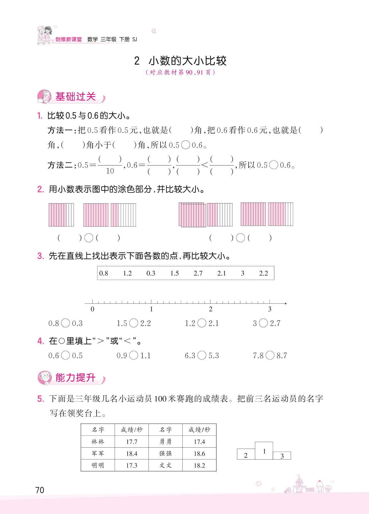 2022下册三年级数学苏教版 八 小数的初步认识——2 小数的大小比较