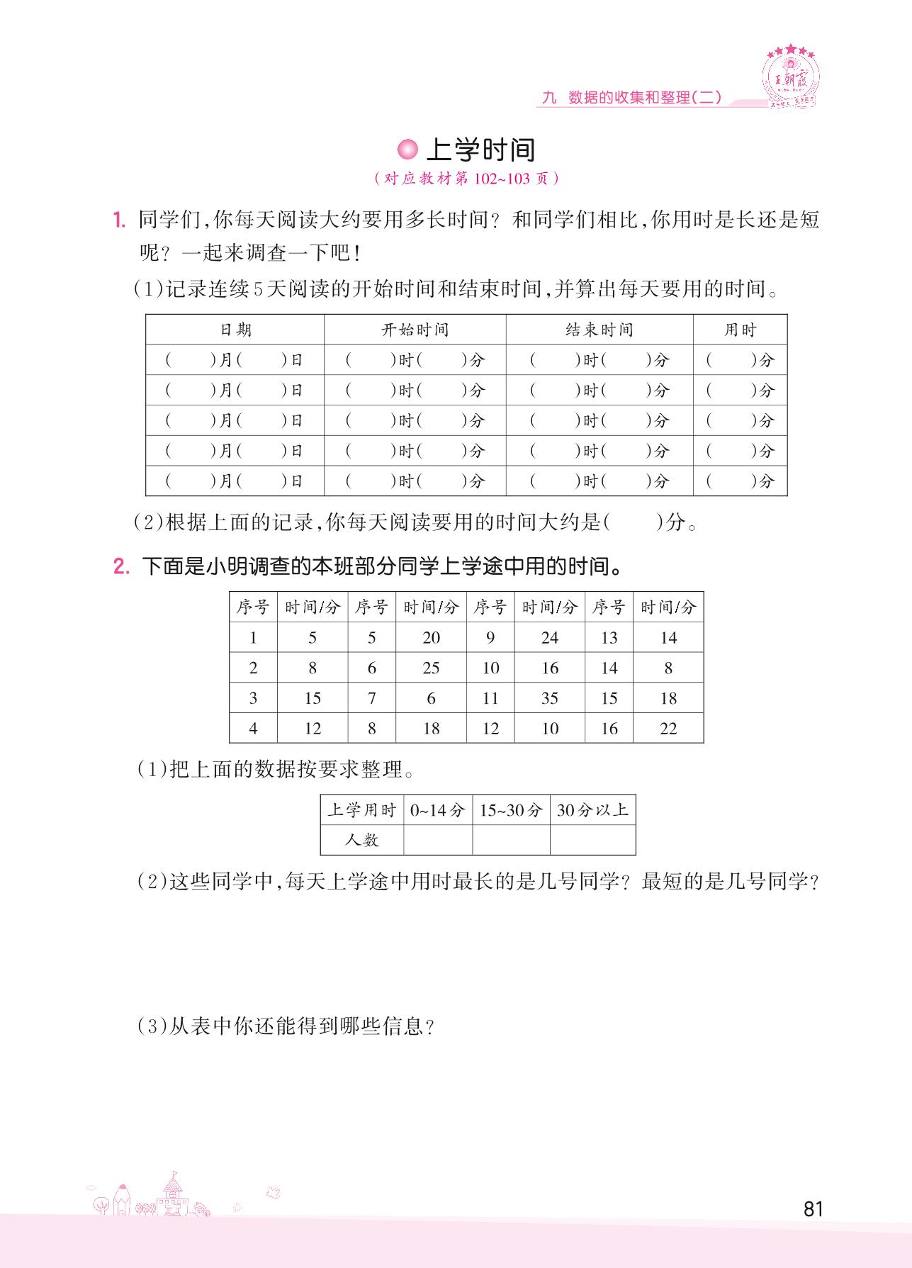 2022下册三年级数学苏教版 九 数据的收集和整理(二)——上学时间