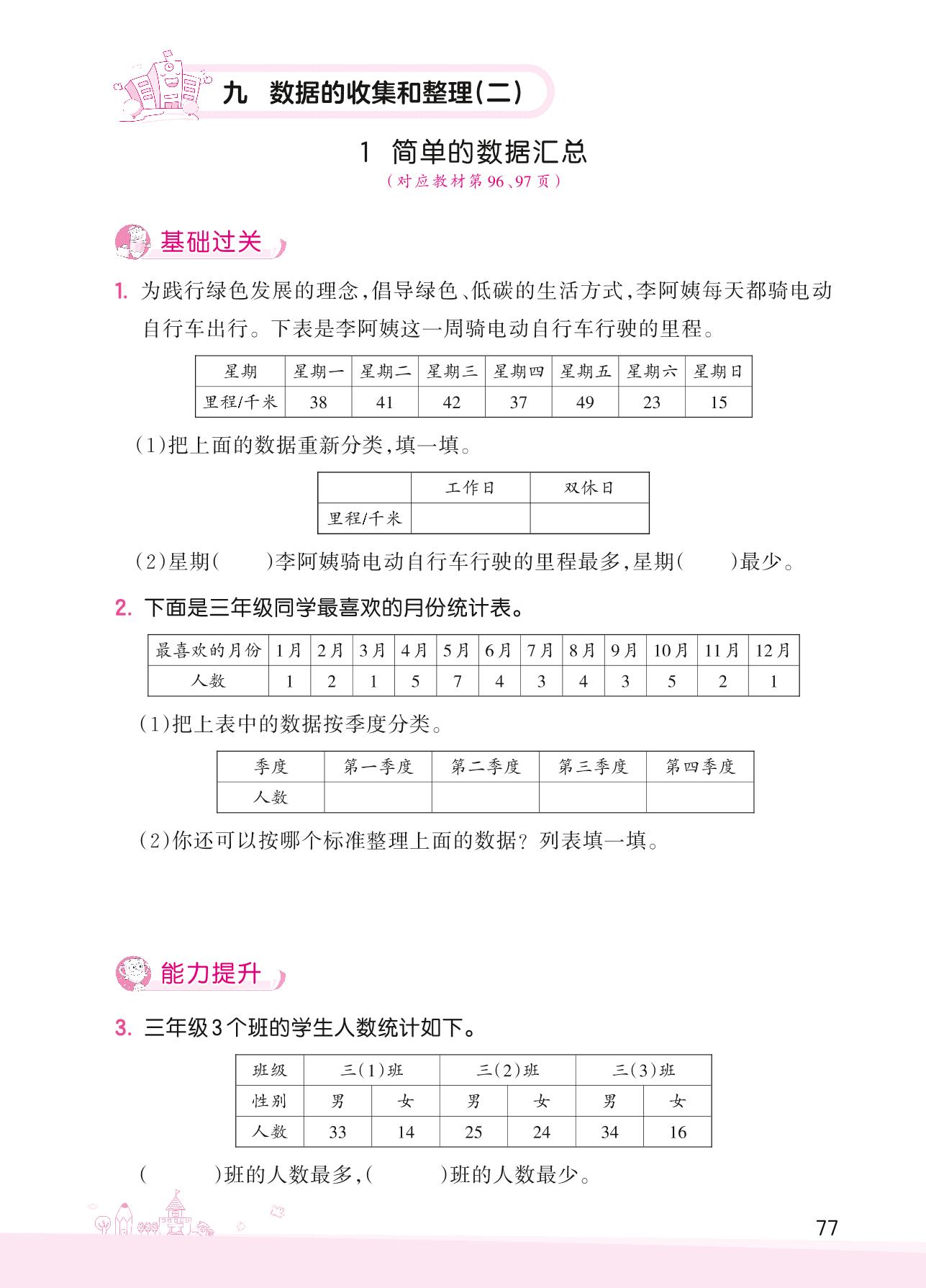 2022下册三年级数学苏教版 九 数据的收集和整理(二)——1 简单的数据汇总