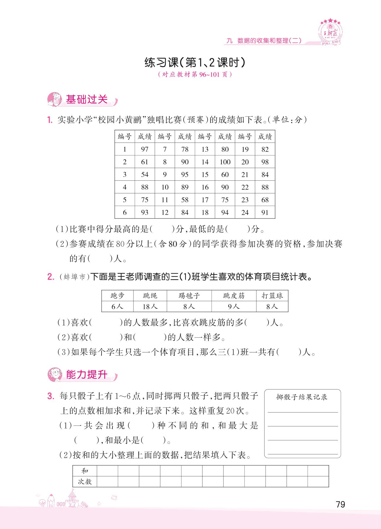 2022下册三年级数学苏教版 九 数据的收集和整理(二)——练习课(第1、2课时)