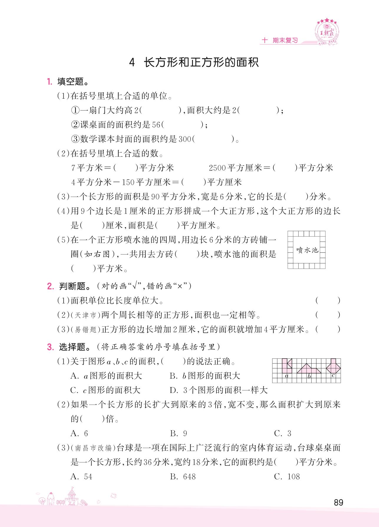 2022下册三年级数学苏教版 十 期末复习——4 长方形和正方形的面积