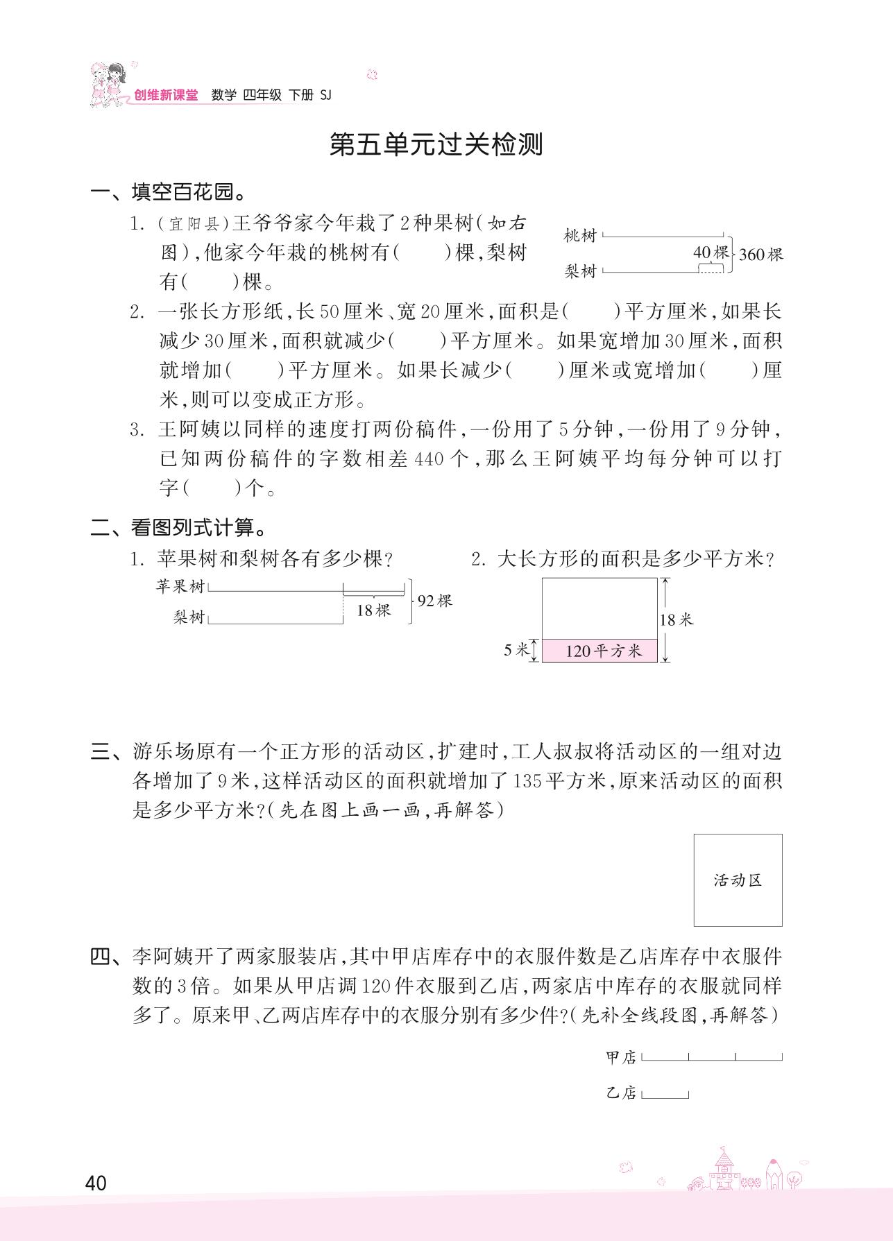 2022下册四年级数学苏教版 五 解决问题的策略——第五单元过关检测