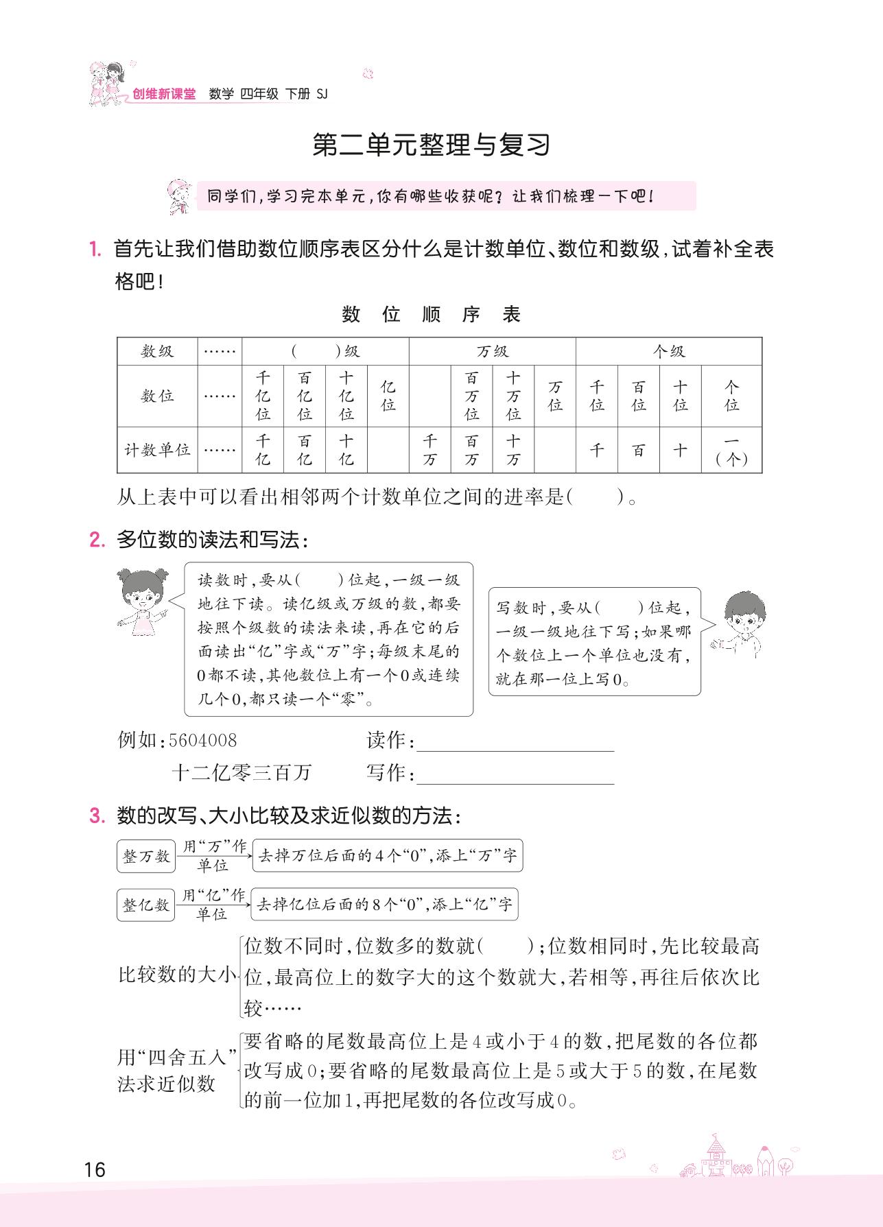 2022下册四年级数学苏教版 二 认识多位数——第二单元整理与复习