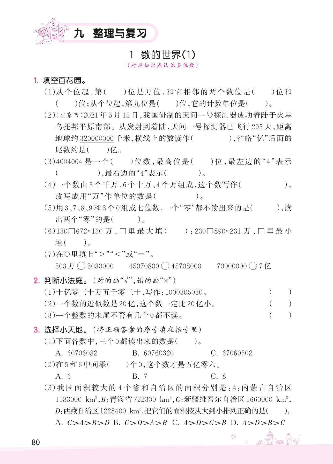 2022下册四年级数学苏教版 九 整理与复习——1 数的世界(1)