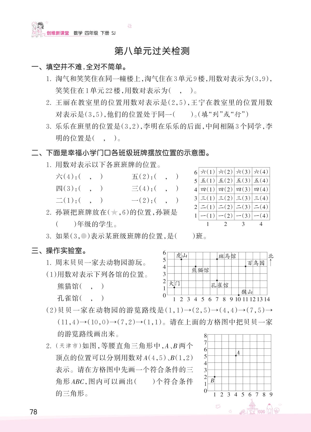 2022下册四年级数学苏教版 八 确定位置——第八单元过关检测