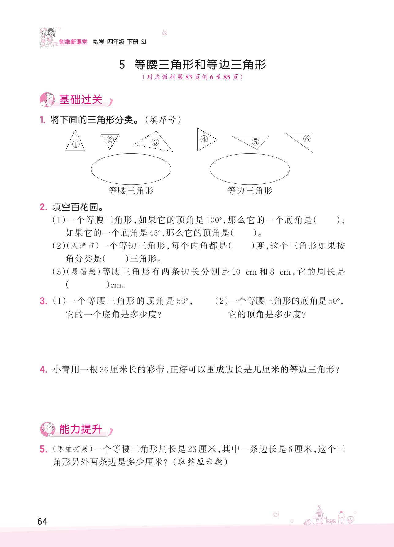 2022下册四年级数学苏教版 七 三角形、平行四边形和梯形——5 等腰三角形和等边三角形