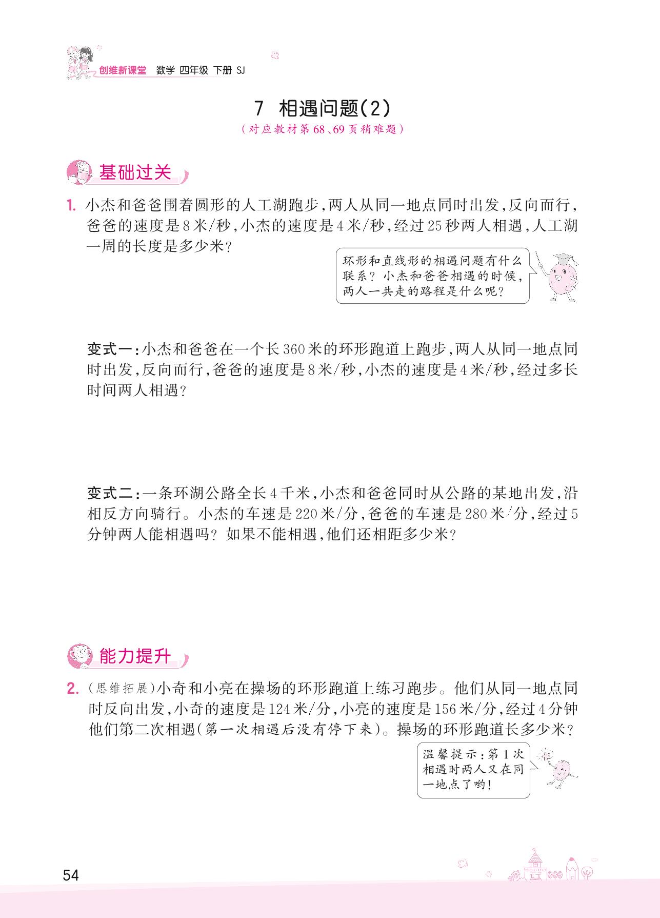 2022下册四年级数学苏教版 六 运算律——7 相遇问题(2)