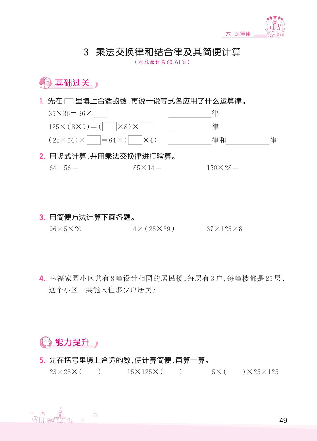 2022下册四年级数学苏教版 六 运算律——3 乘法交换律和结合律及其简便计算