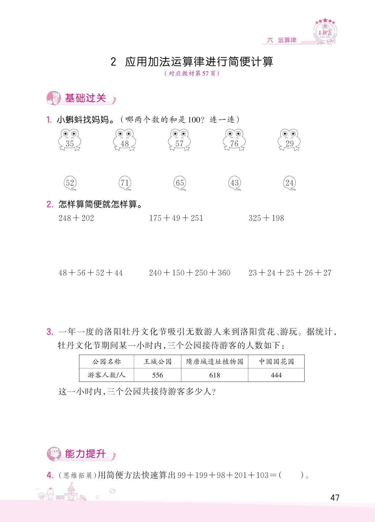 2022下册四年级数学苏教版 六 运算律——2 应用加法运算律进行简便计算