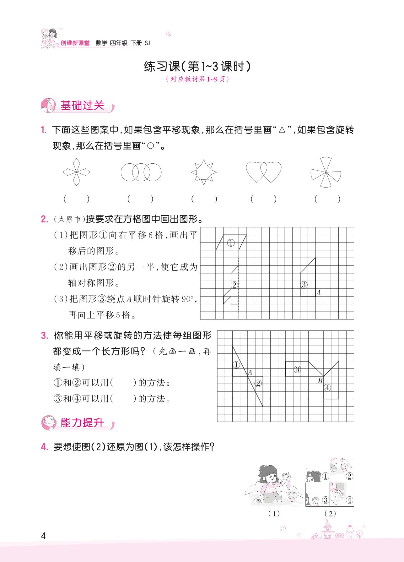 2022下册四年级数学苏教版 一 平移、旋转和轴对称——练习课(第1~3课时)