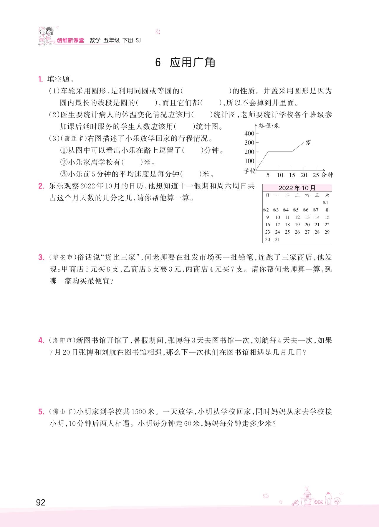 2022下册五年级数学苏教版 八 整理与复习——6 应用广角