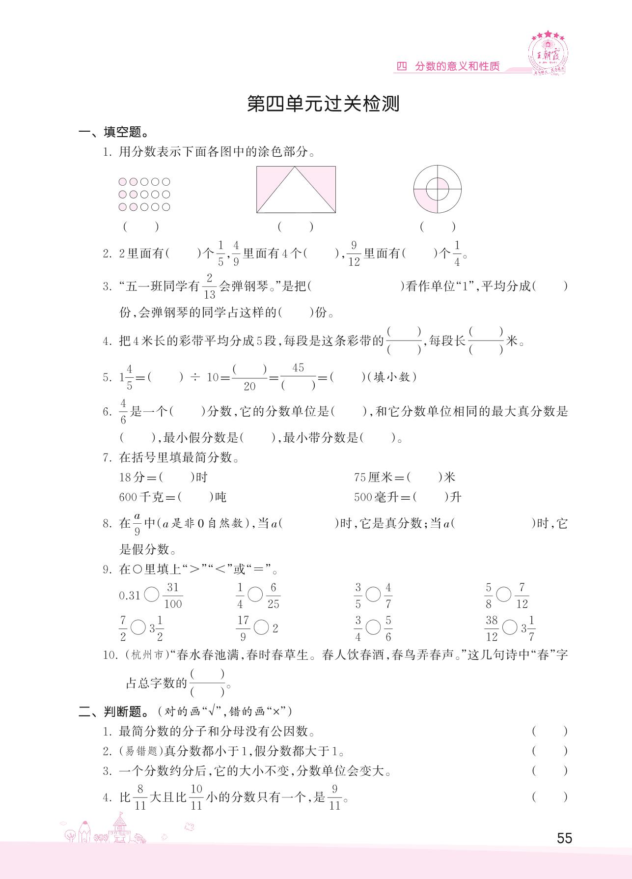 2022下册五年级数学苏教版 四 分数的意义和性质——第四单元过关检测