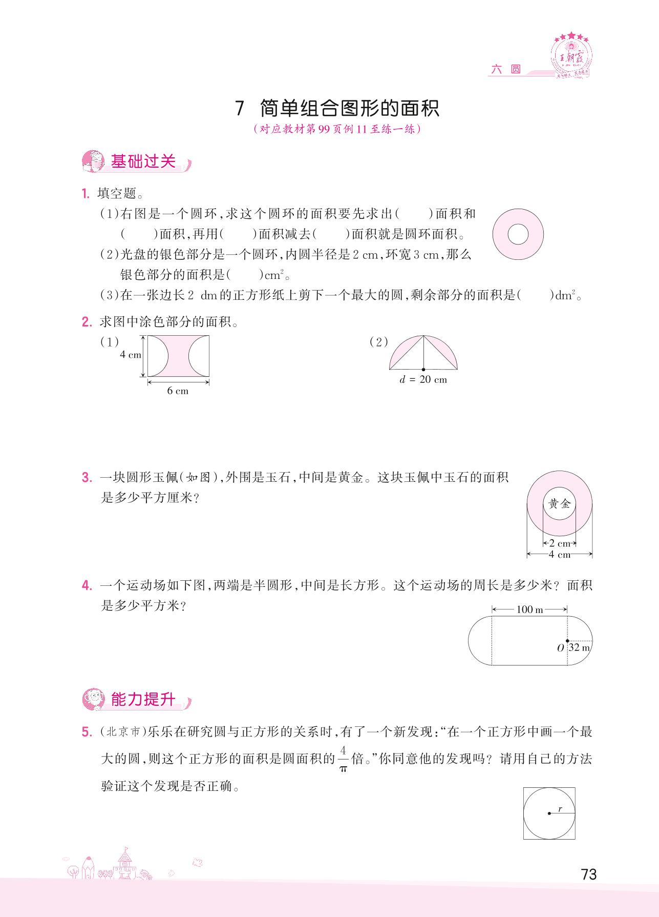 2022下册五年级数学苏教版 六 圆——7 简单组合图形的面积