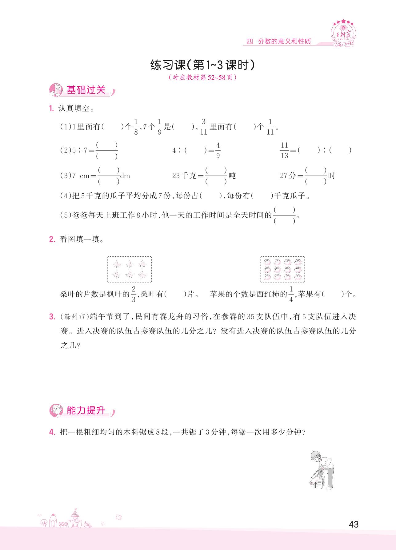 2022下册五年级数学苏教版 四 分数的意义和性质——练习课(第1~3课时)