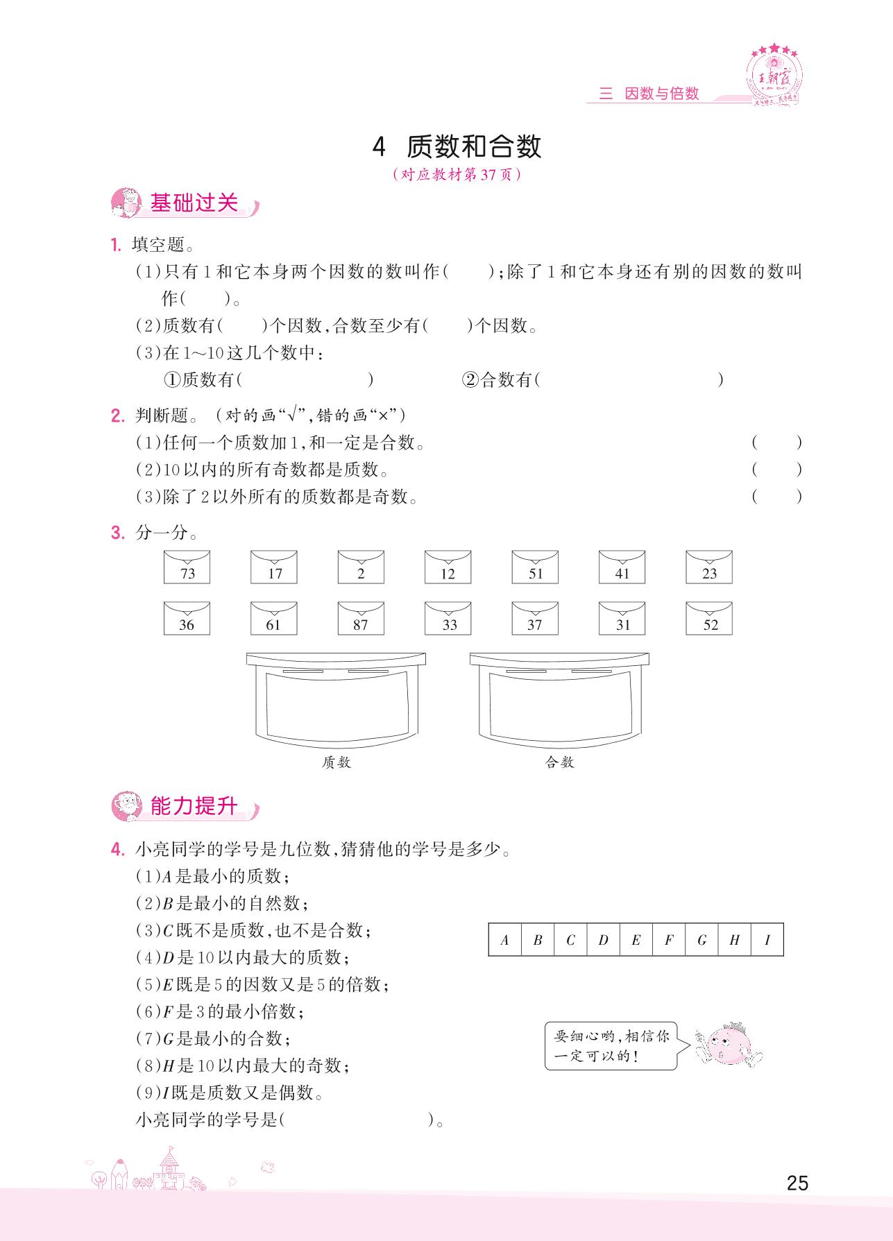 2022下册五年级数学苏教版 三 因数与倍数——4 质数和合数