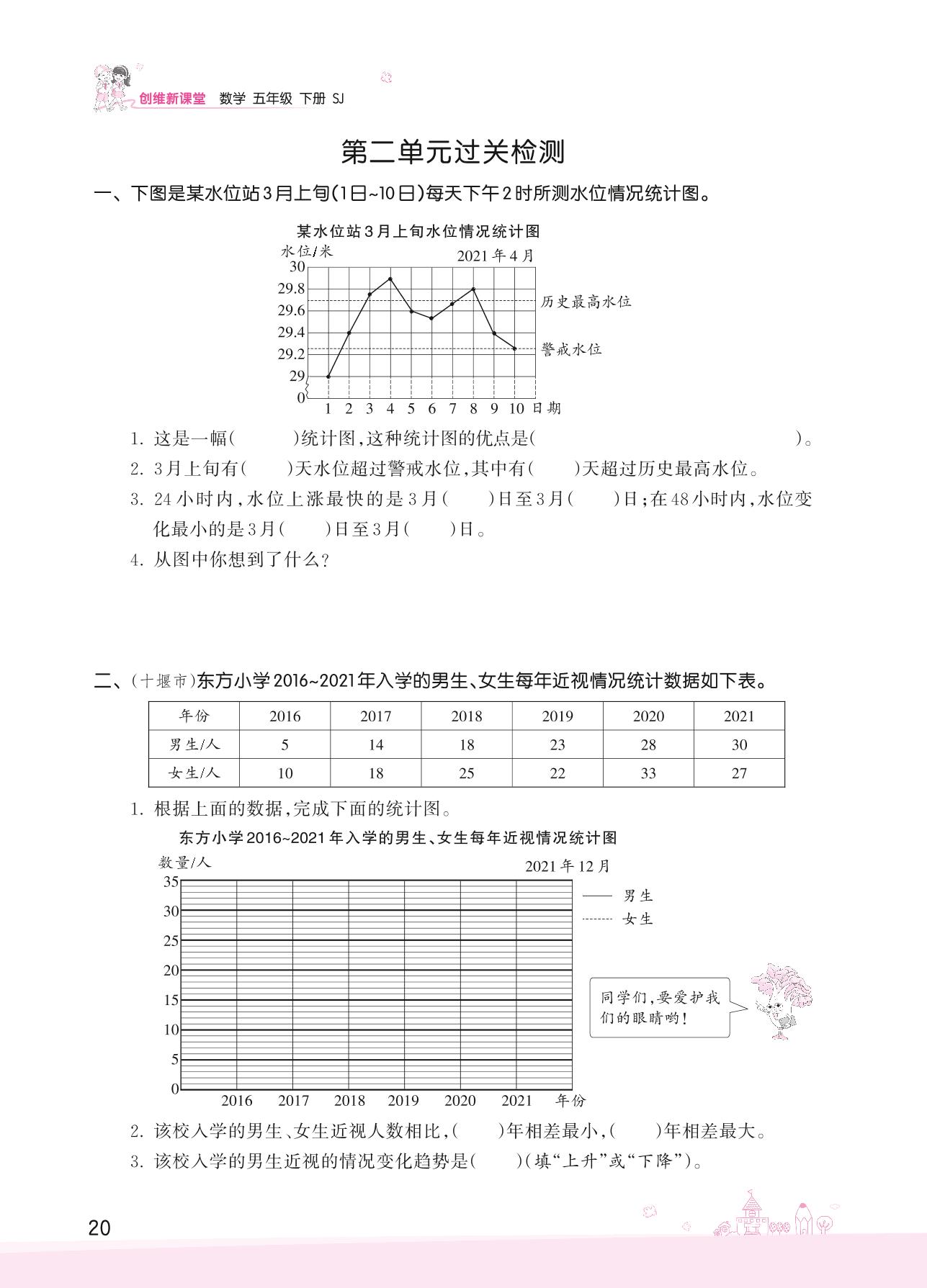 2022下册五年级数学苏教版 二 折线统计图——第二单元过关检测