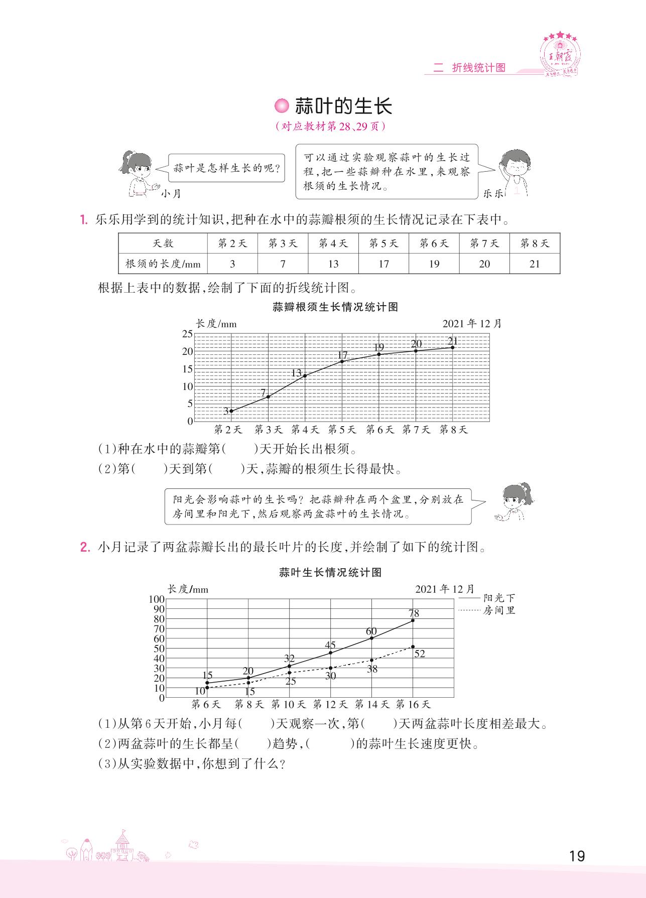 2022下册五年级数学苏教版 二 折线统计图——蒜叶的生长