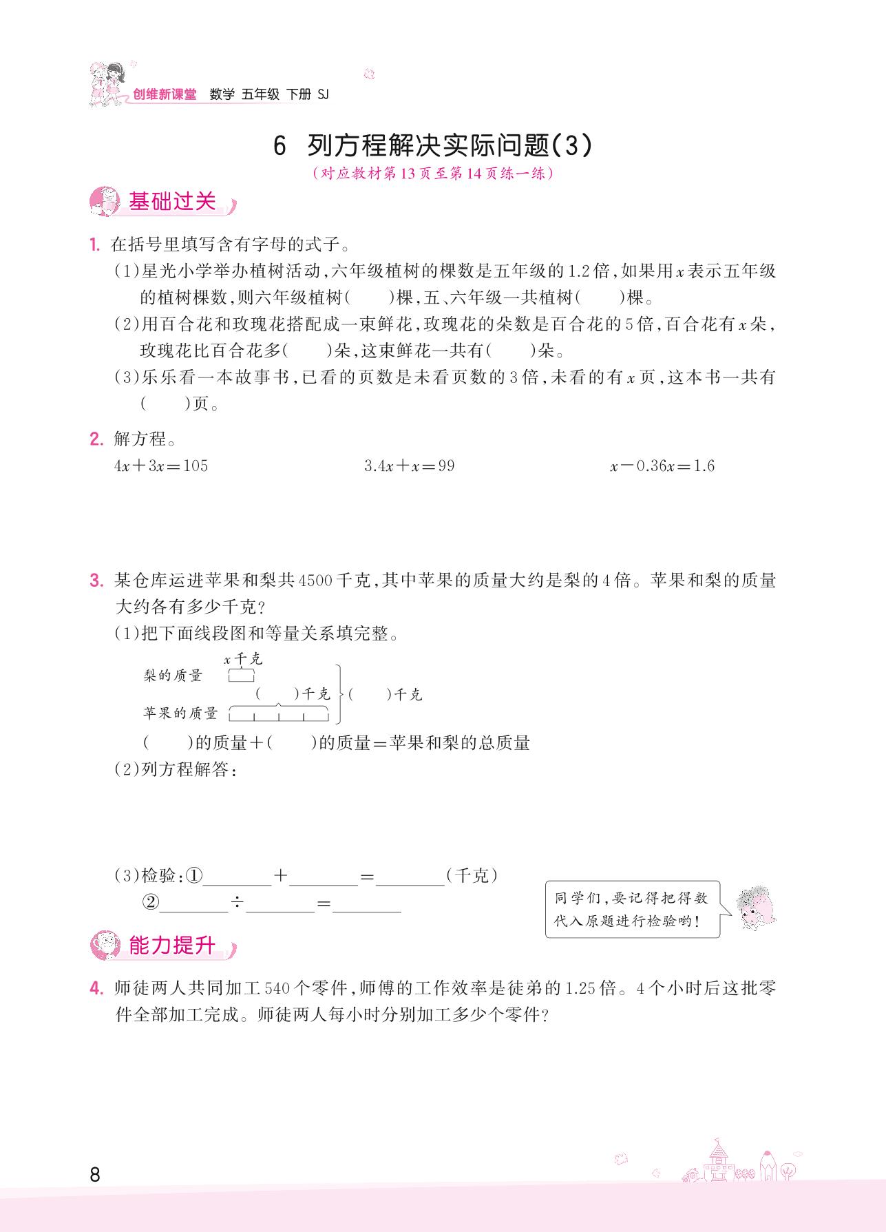 2022下册五年级数学苏教版 一 简易方程——6 列方程解决实际问题(3)