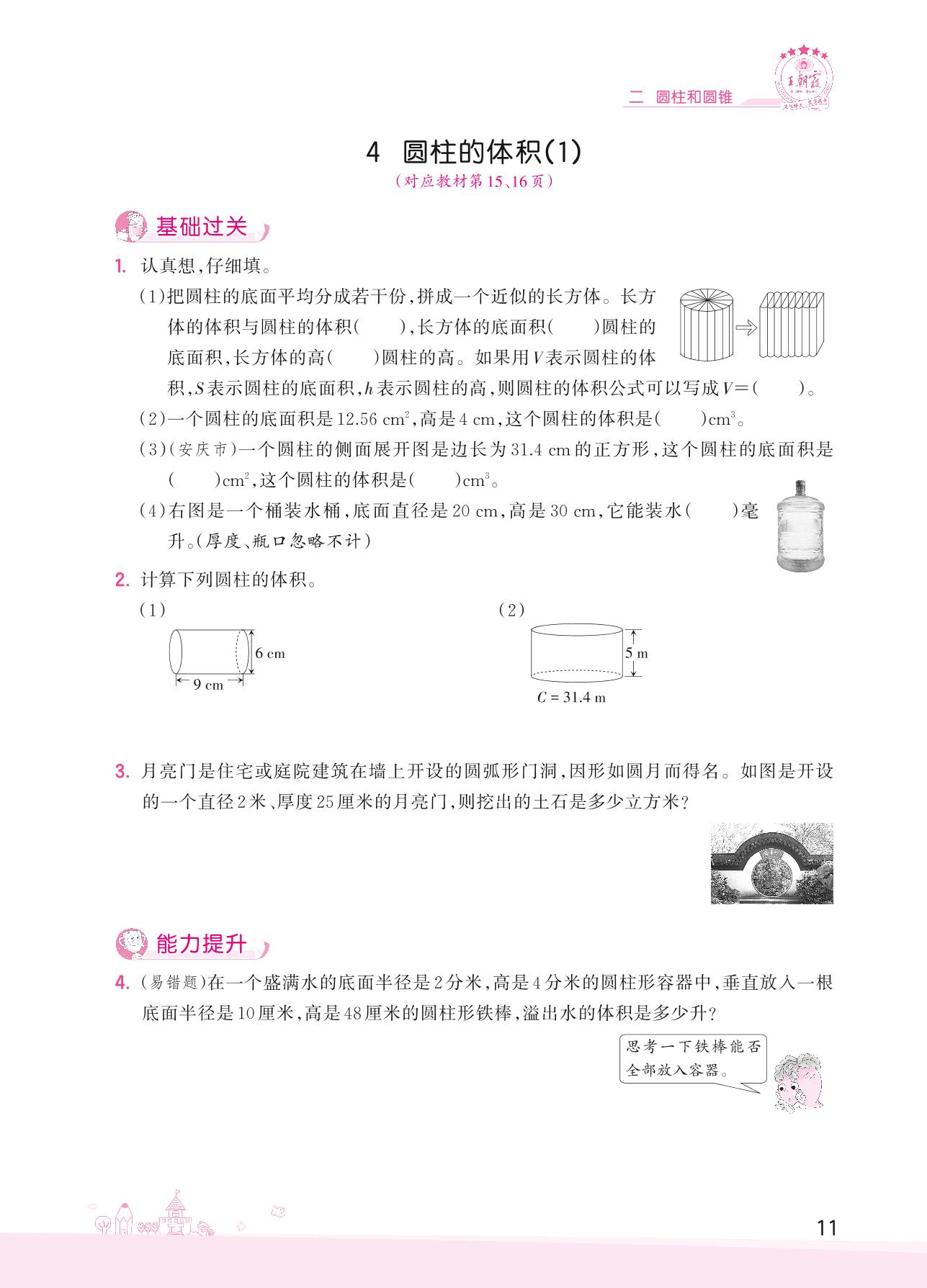 2022下册六年级数学苏教版 二 圆柱和圆锥——4 圆柱的体积(1)