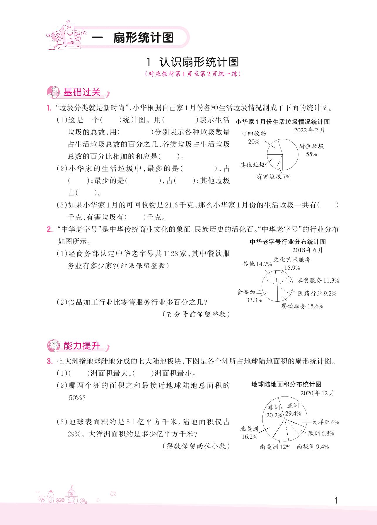 2022下册六年级数学苏教版 一 扇形统计图——1 认识扇形统计图