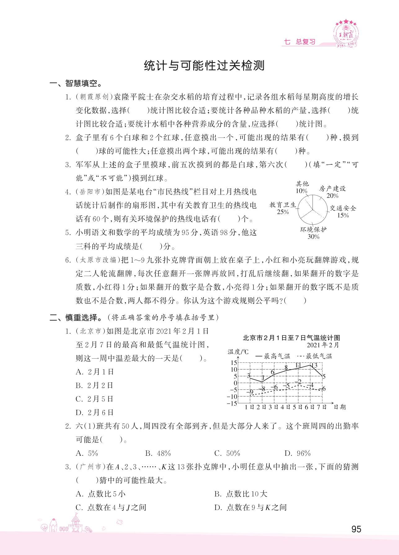 2022下册六年级数学苏教版 七 总复习——统计与可能性过关检测