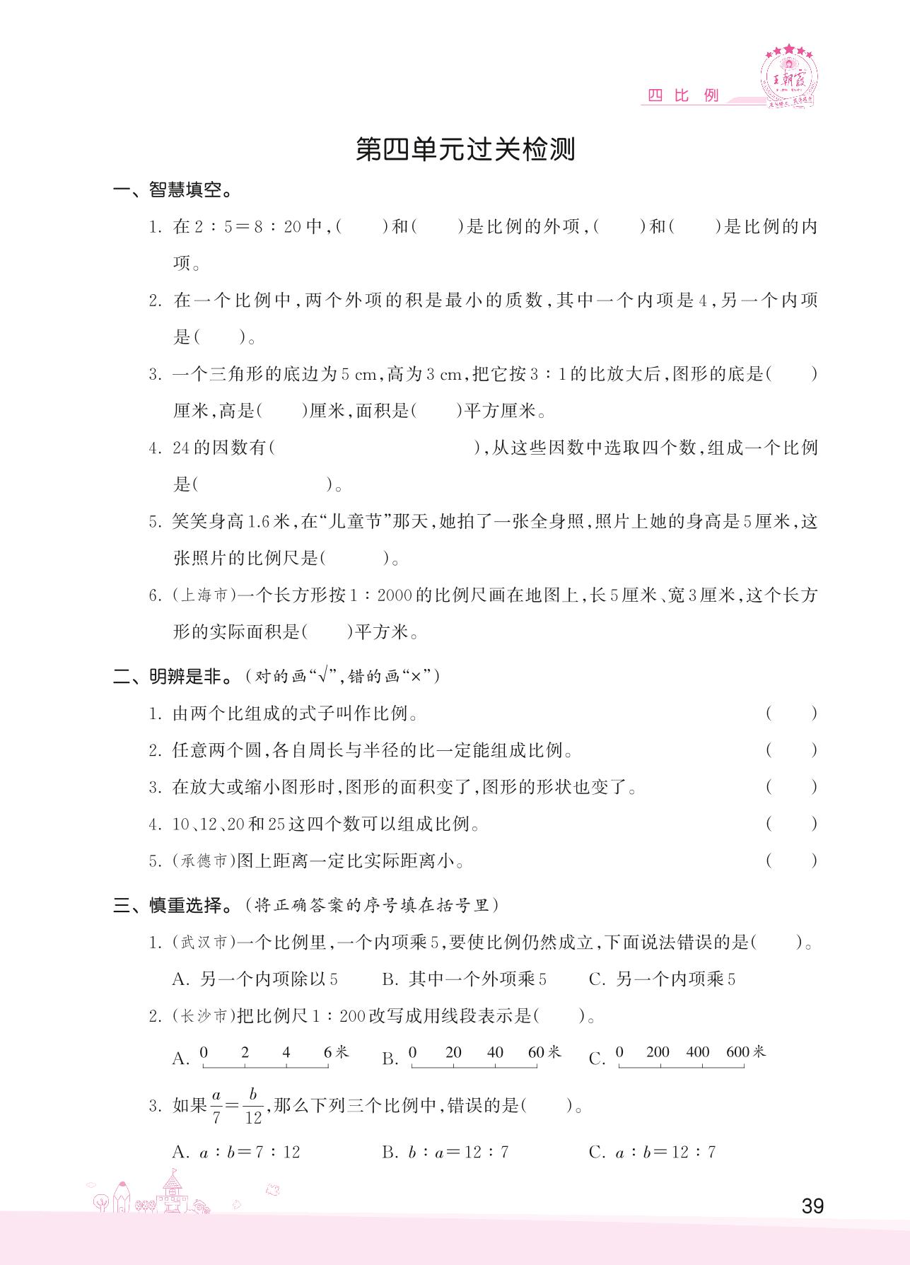 2022下册六年级数学苏教版 四 比 例——第四单元过关检测