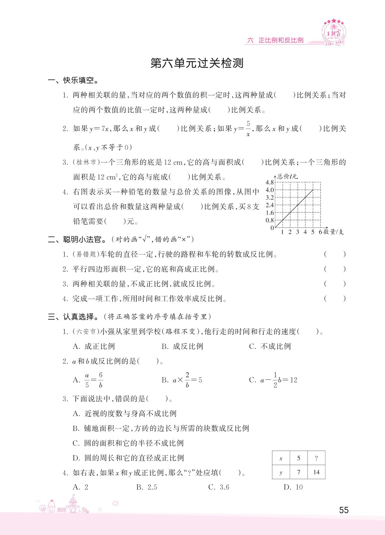 2022下册六年级数学苏教版 六 正比例和反比例——第六单元过关检测