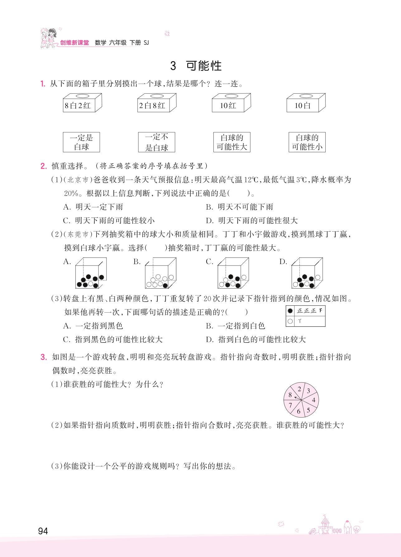 2022下册六年级数学苏教版 七 总复习——3 可能性