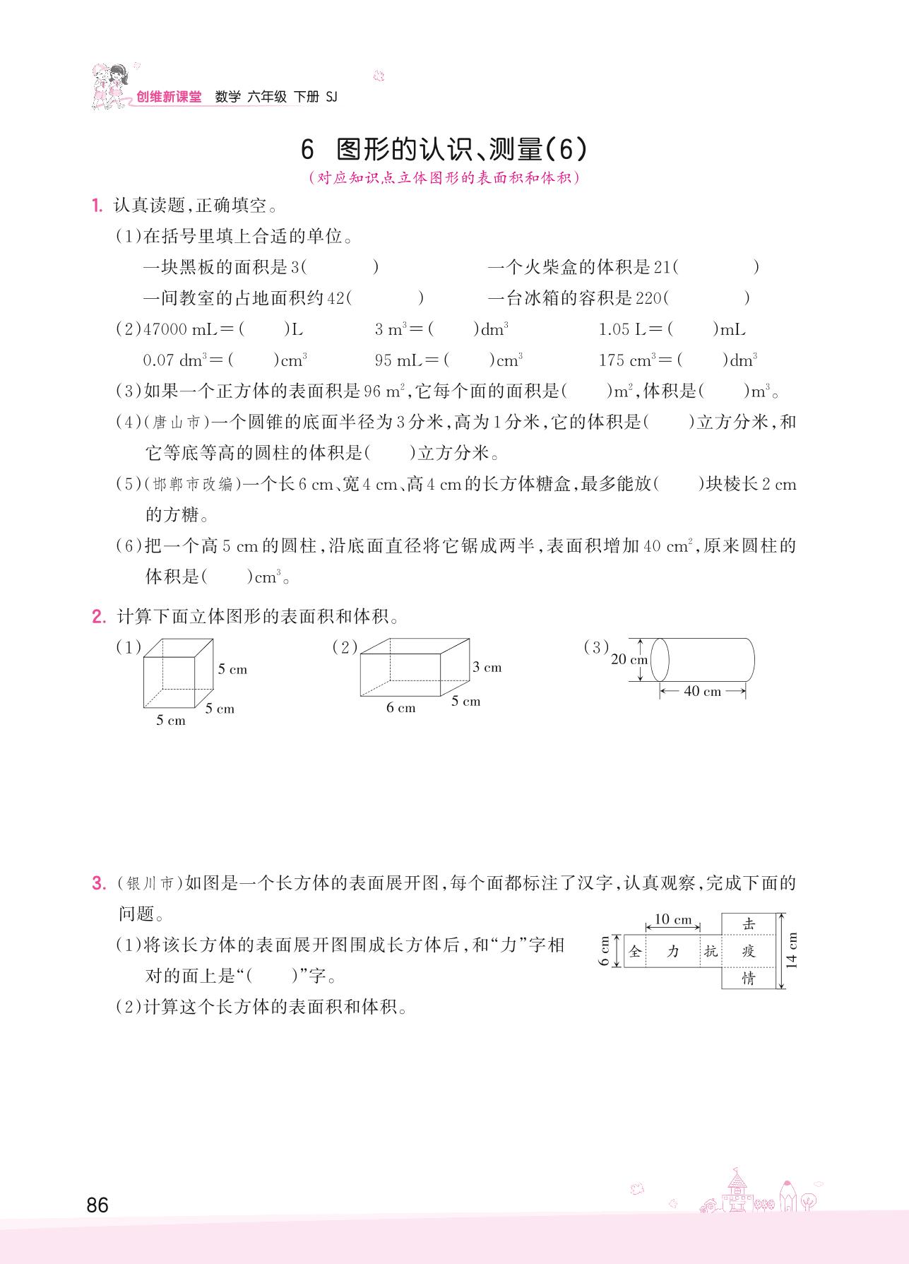 2022下册六年级数学苏教版 七 总复习——6 图形的认识、测量(6)