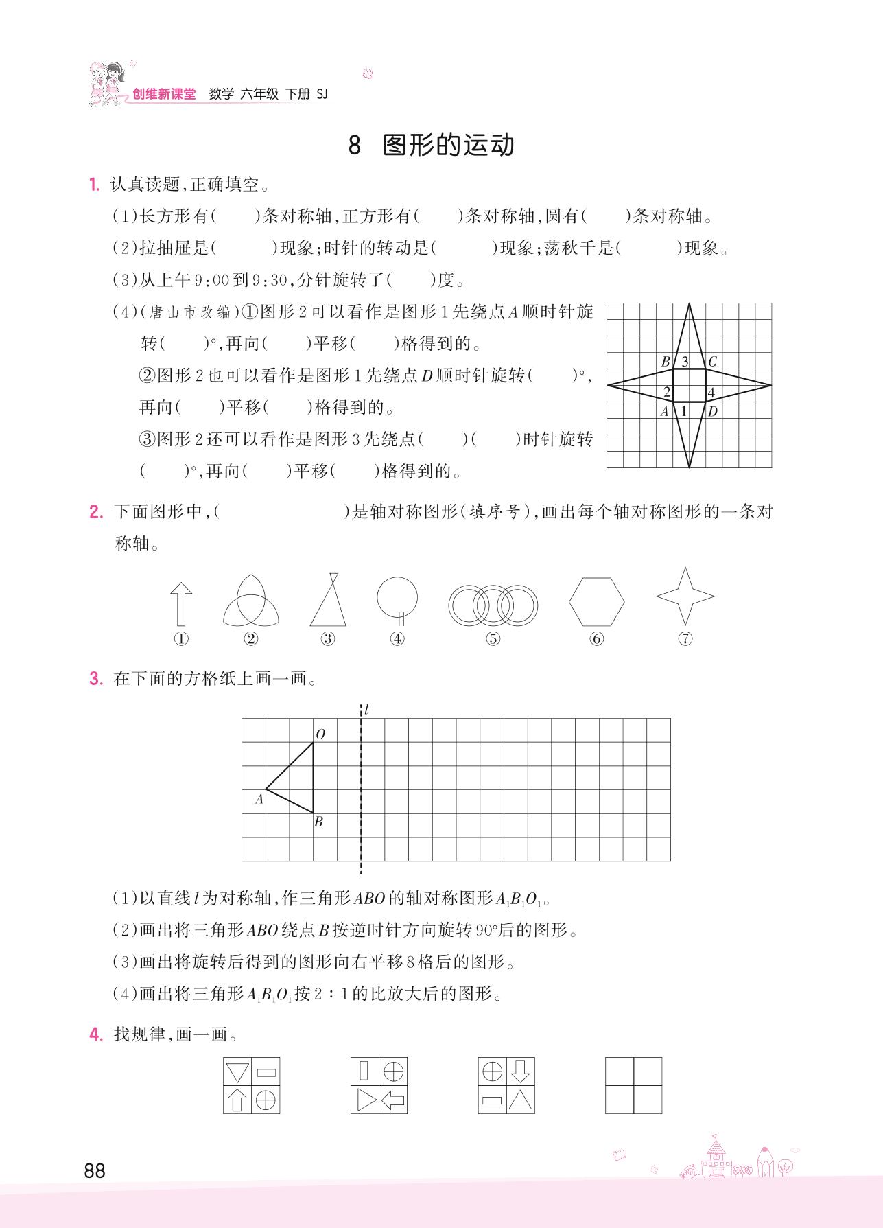 2022下册六年级数学苏教版 七 总复习——8 图形的运动