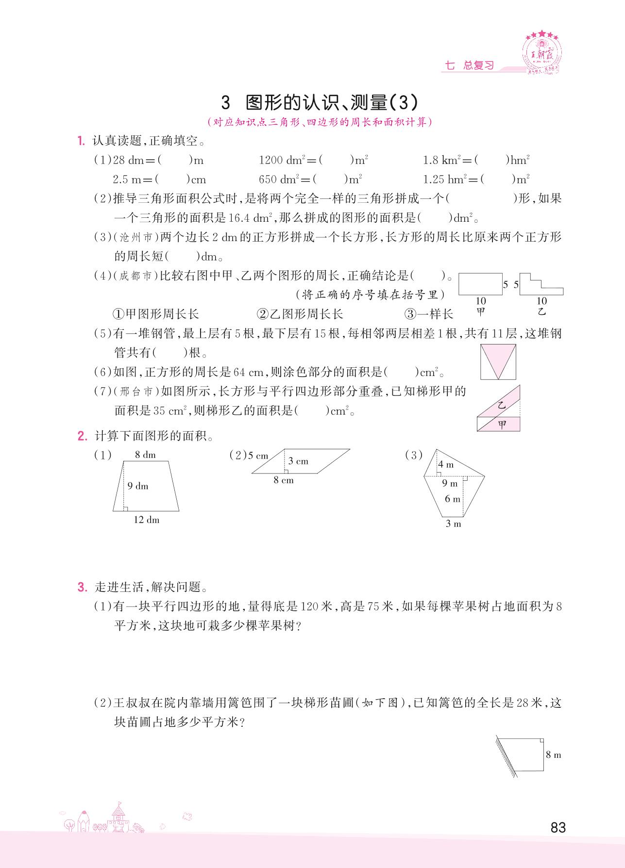 2022下册六年级数学苏教版 七 总复习——3 图形的认识、测量(3)