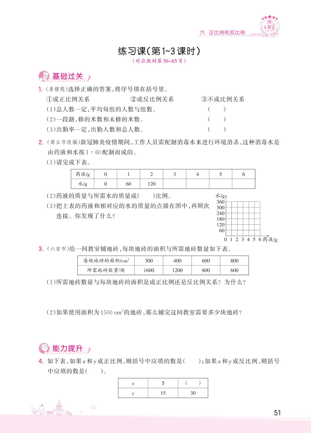 2022下册六年级数学苏教版 六 正比例和反比例——练习课(第1~3课时)