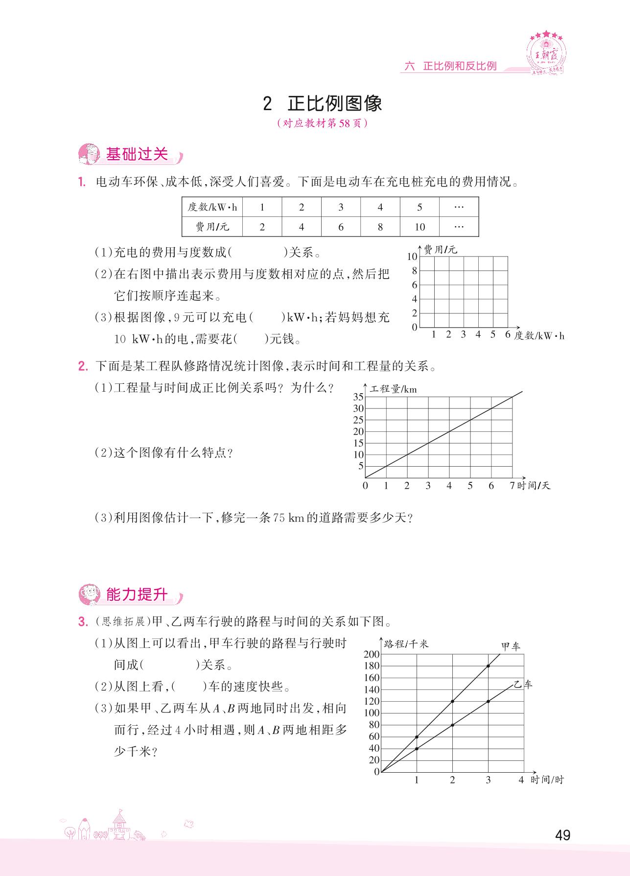 2022下册六年级数学苏教版 六 正比例和反比例——2 正比例图像