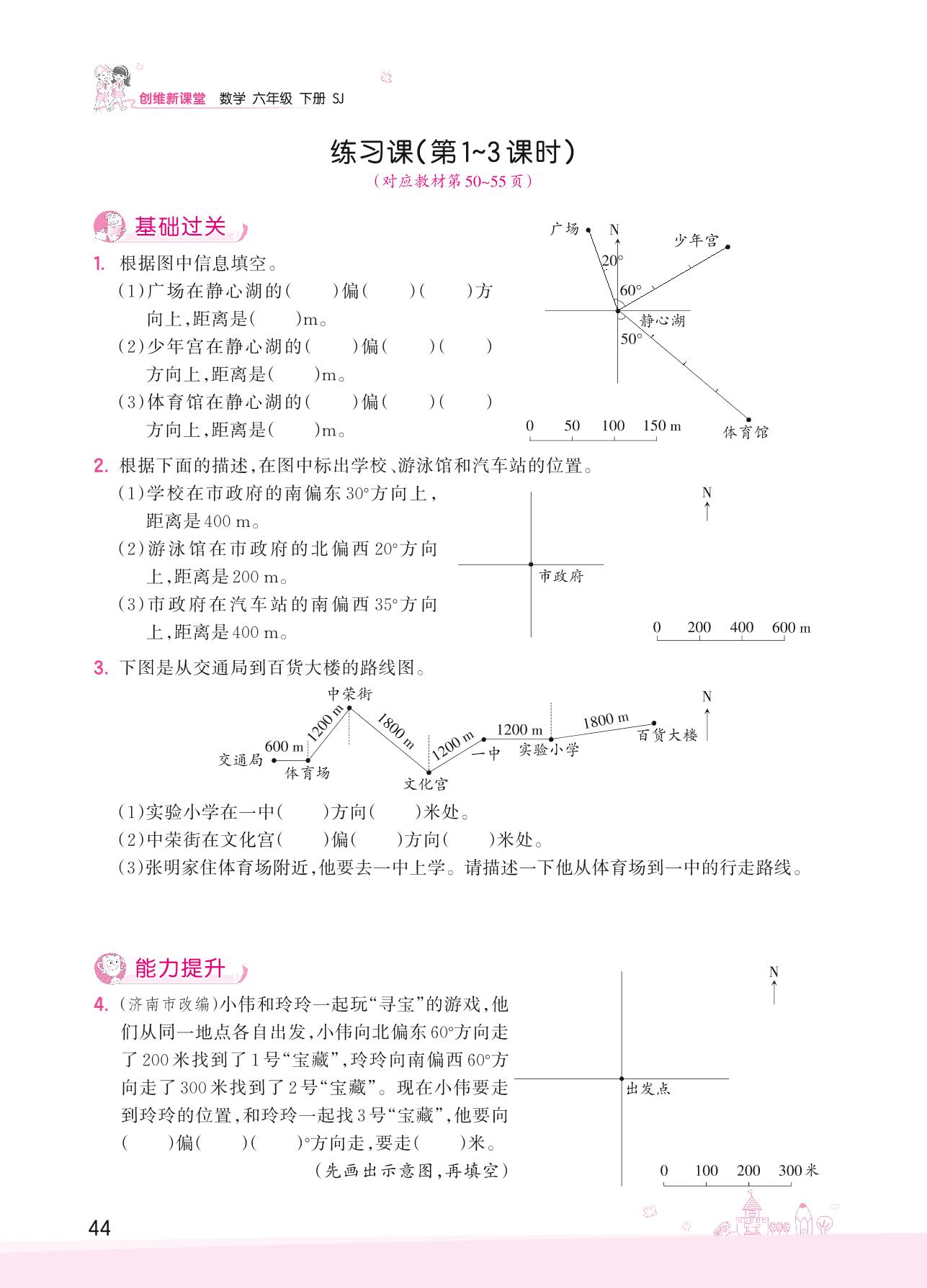 2022下册六年级数学苏教版 五 确定位置——练习课(第1~3课时)