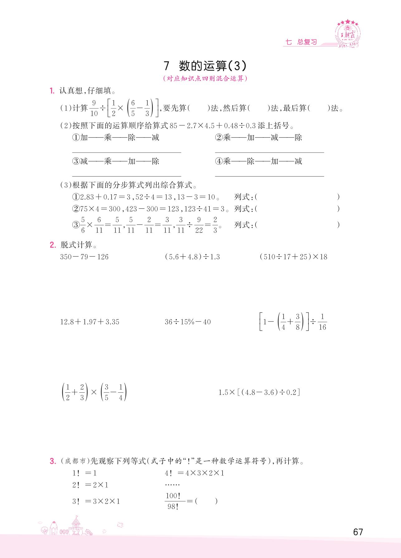 2022下册六年级数学苏教版 七 总复习——7 数的运算(3)
