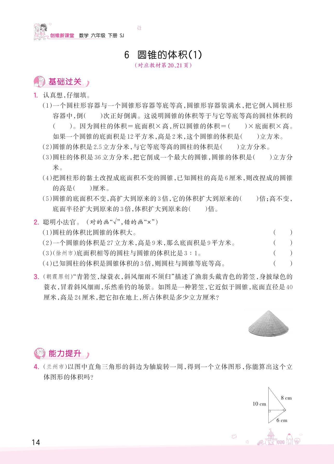 2022下册六年级数学苏教版 二 圆柱和圆锥——6 圆锥的体积(1)