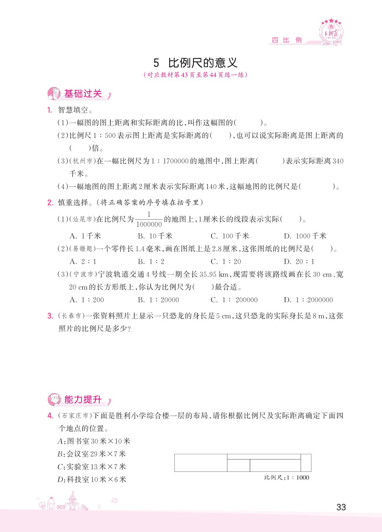 2022下册六年级数学苏教版 四 比 例——5 比例尺的意义