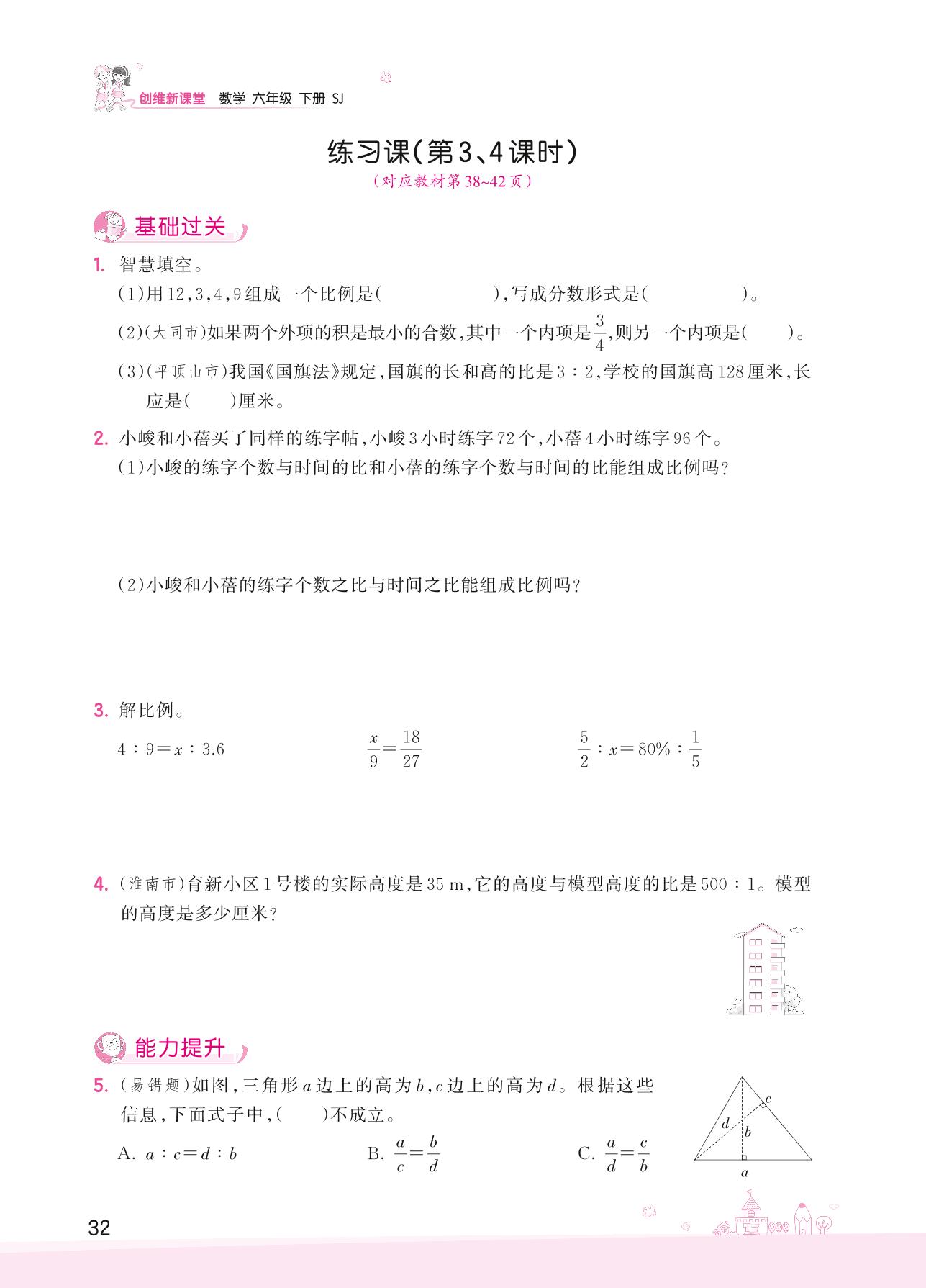 2022下册六年级数学苏教版 四 比 例——练习课(第3、4课时)