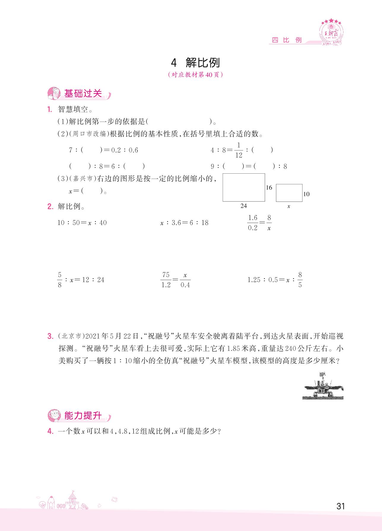 2022下册六年级数学苏教版 四 比 例——4 解比例
