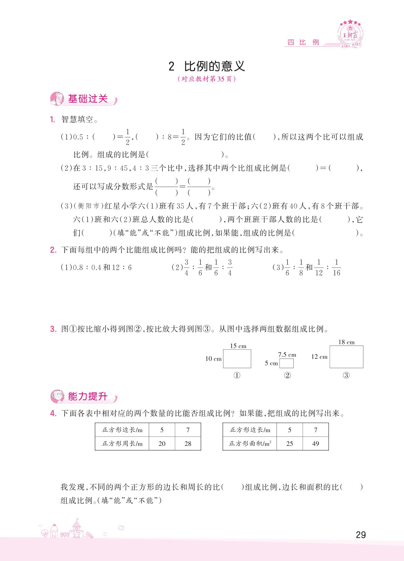2022下册六年级数学苏教版 四 比 例——2 比例的意义