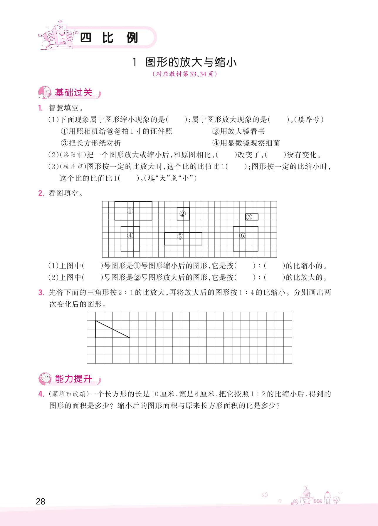2022下册六年级数学苏教版 四 比 例——1 图形的放大与缩小