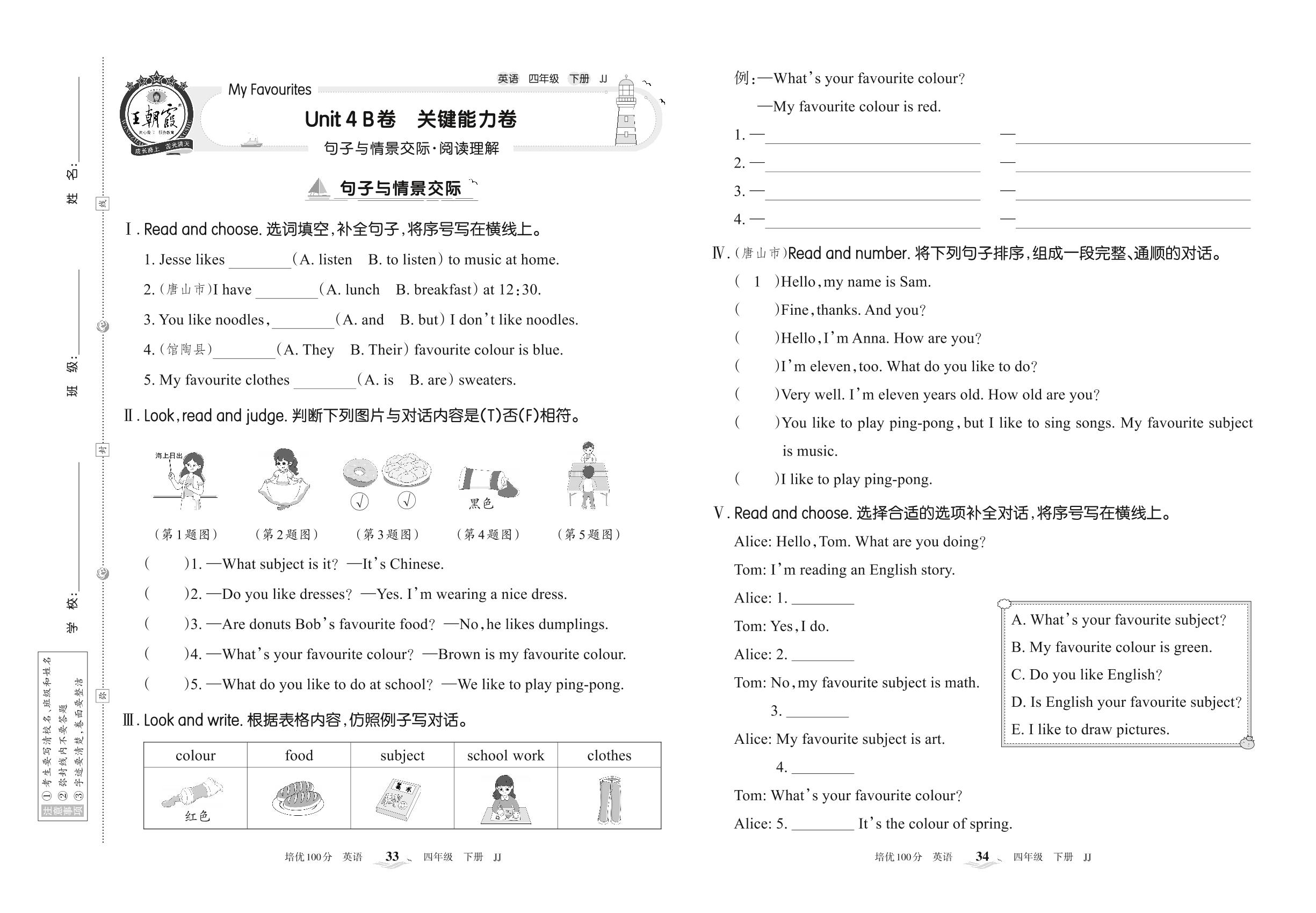 2022下册四年级英语冀教版 Unit 4 B卷 关键能力卷