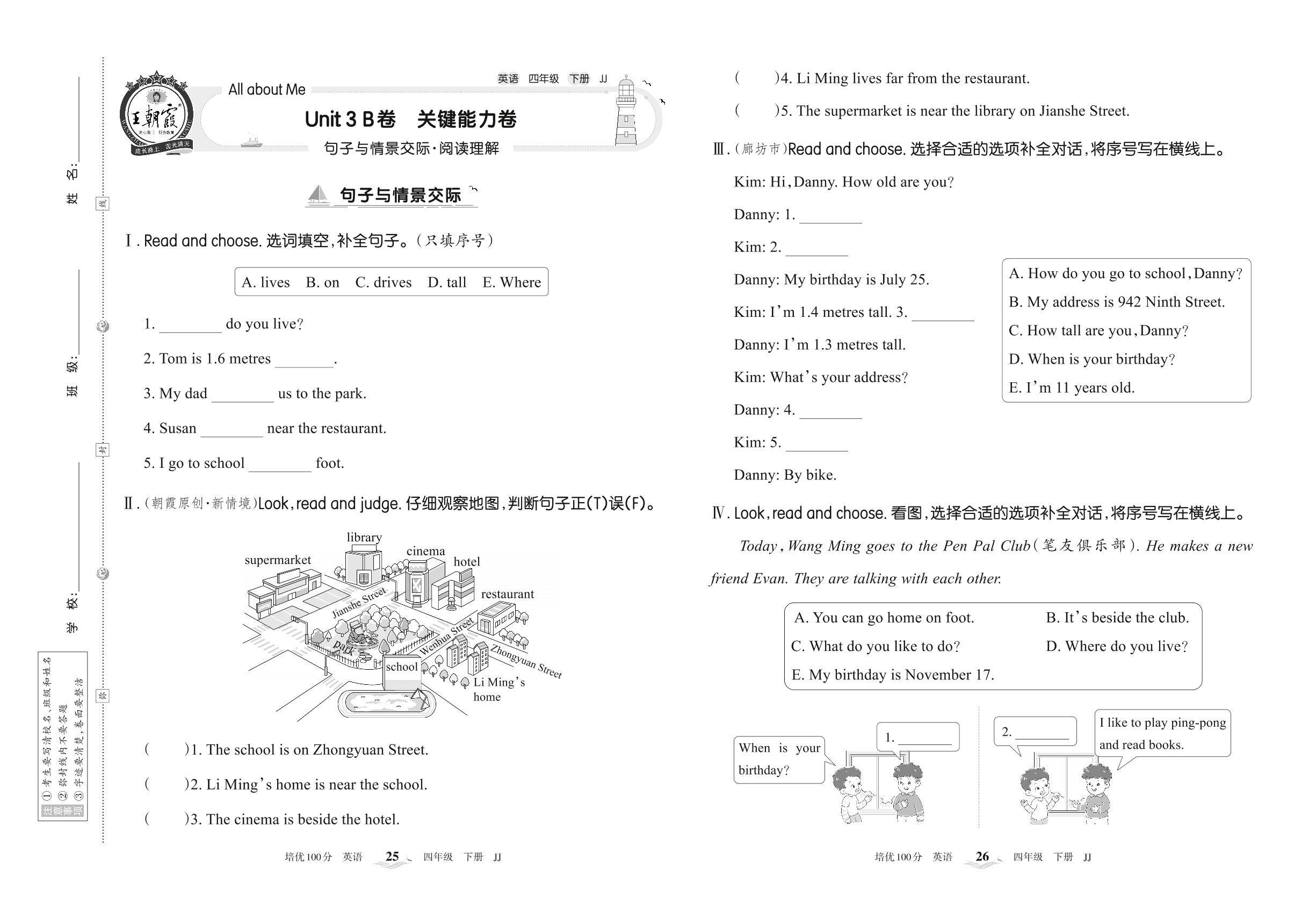 2022下册四年级英语冀教版 Unit 3 B卷 关键能力卷