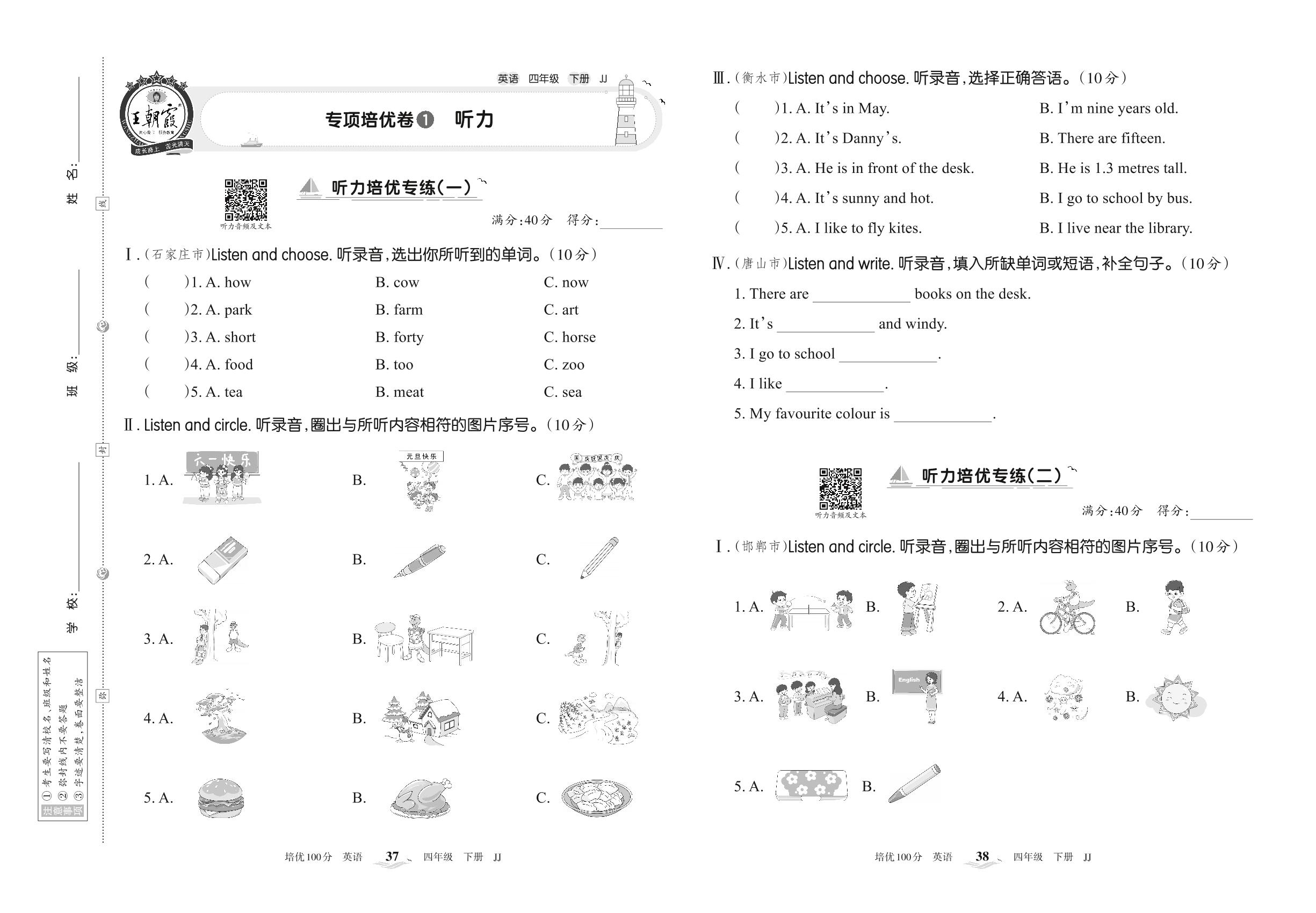 2022下册四年级英语冀教版 专项培优卷1 听力