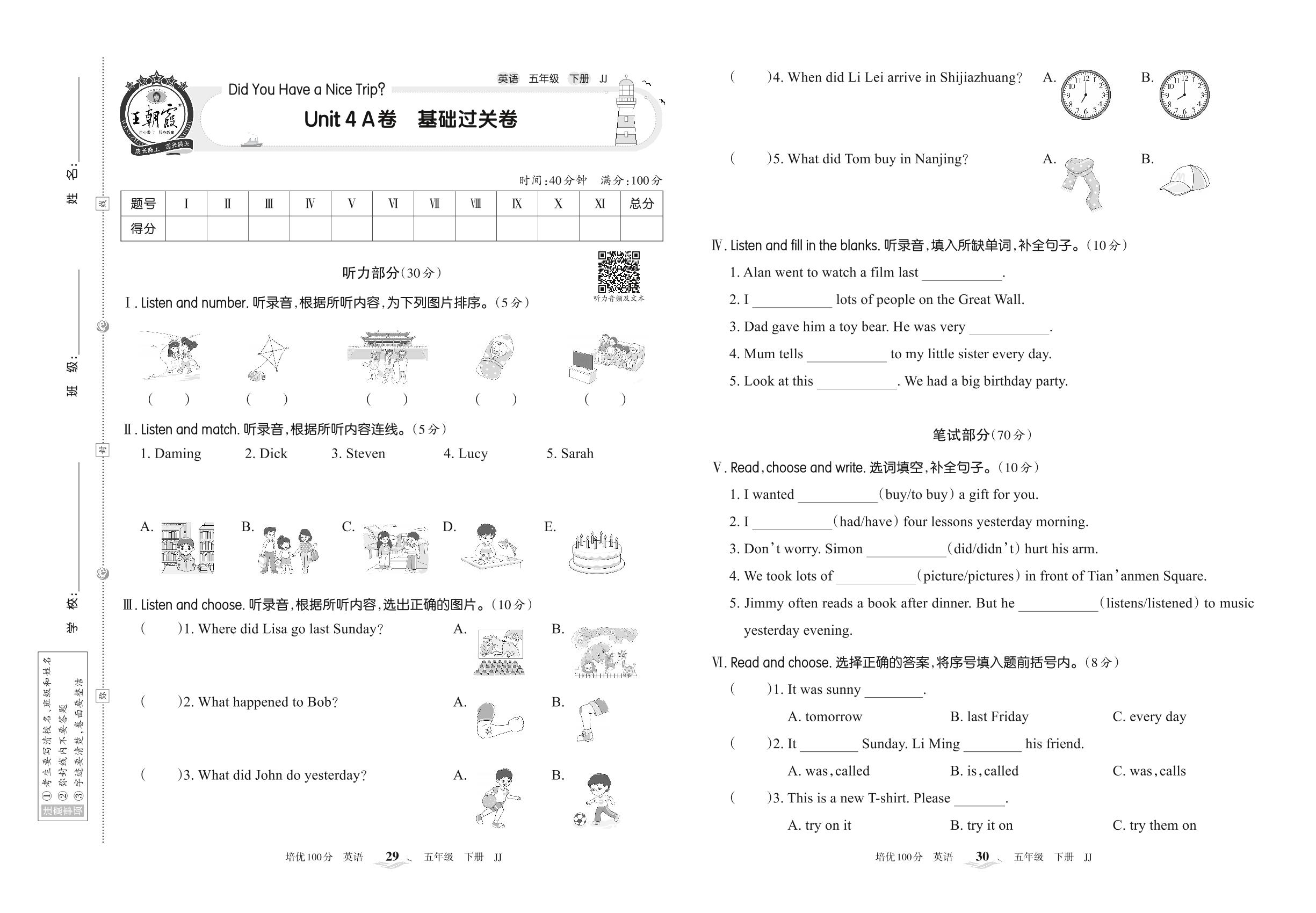 2022下册五年级英语冀教版 Unit 4 A卷 基础过关卷