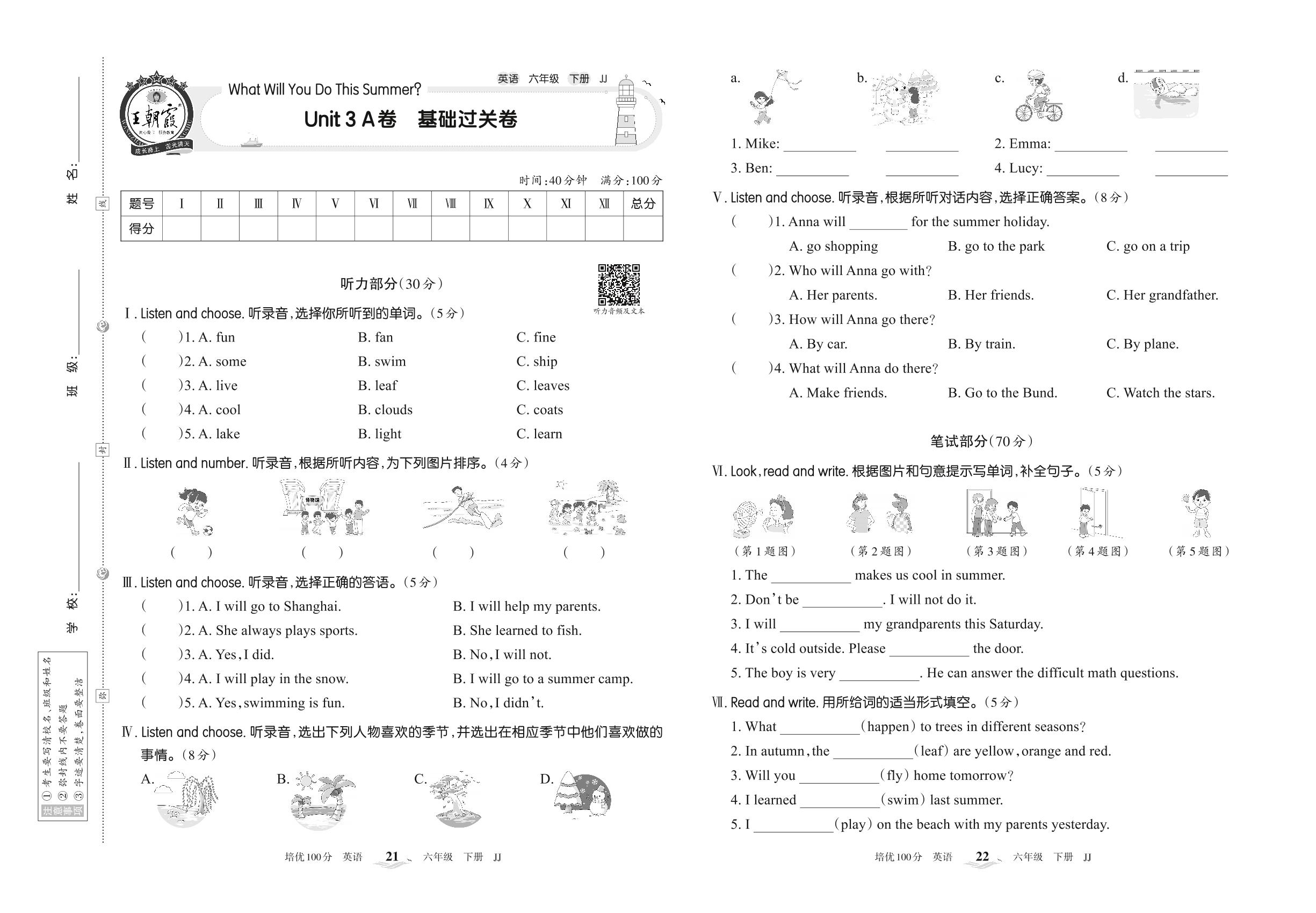 六年级英语冀教版下册单元卷