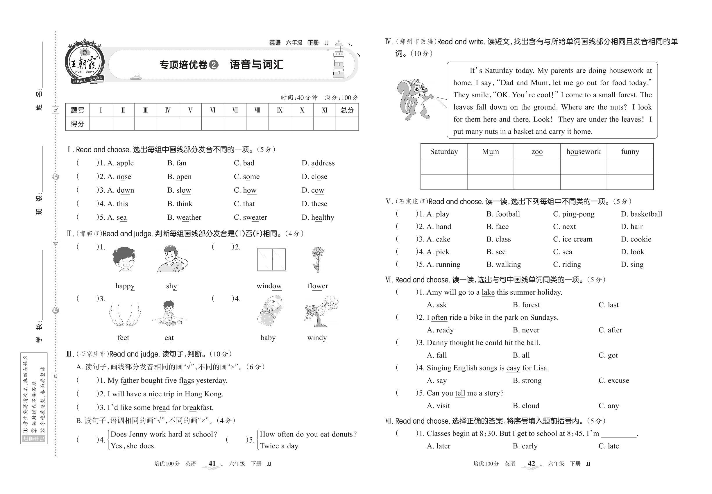 2022下册六年级英语冀教版 专项培优卷2 语音与词汇