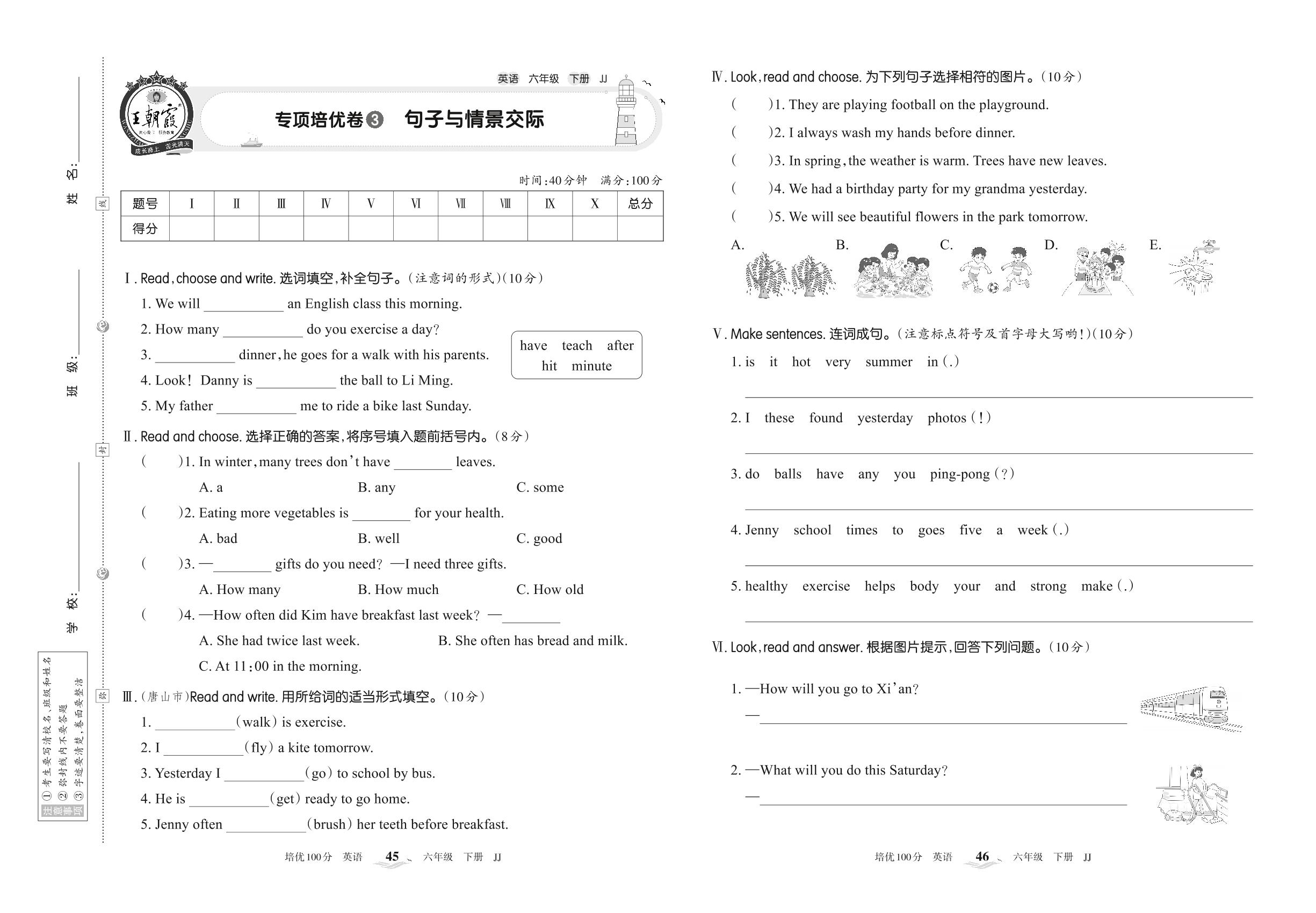 2022下册六年级英语冀教版 专项培优卷3 句子与情景交际