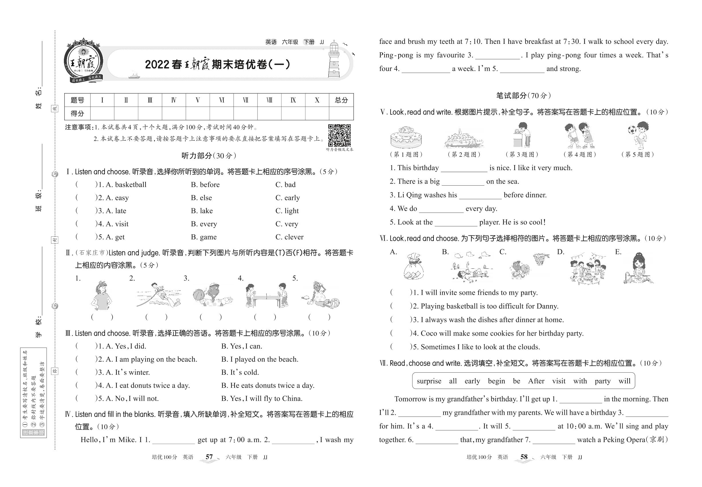 2022下册六年级英语冀教版 王朝霞期末培优卷(一)