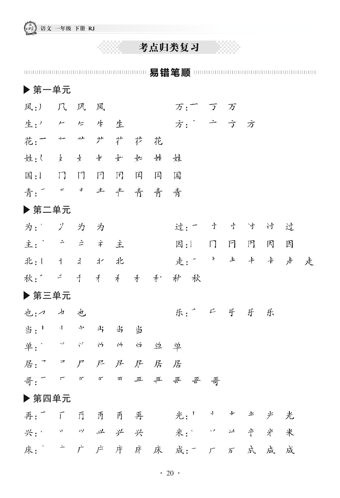 2022下册一年级语文人教版 单元考点梳理——考点归类复习